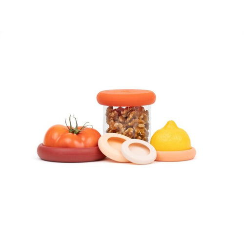 De Food Huggers set van 5 Terra Cotta bestaat uit siliconen vormen die perfect passen over doormidden gesneden groenten en fruit om ze langer vers te houden. Ze beschermen de gesneden buitenzijde, waardoor vocht wordt vastgehouden en voorkomen wordt dat het snel ontsnapt.