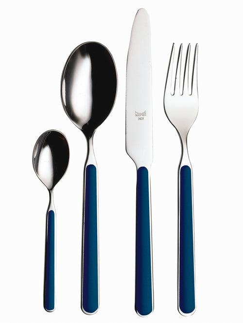 Voeg kleur en stijl toe aan je tafel met de Mepra Fantasia Cobalto 24-delige bestekset!