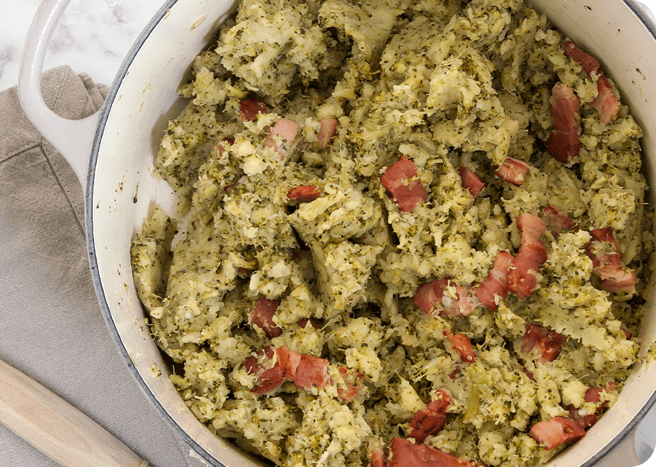 Bbb-puree: belgische bintjes met broccoli en breydelspek