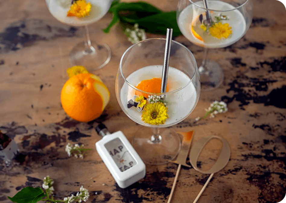 • Zeef in een coupeglas en garneer met sinaasappelschil en/of eetbare bloemen.