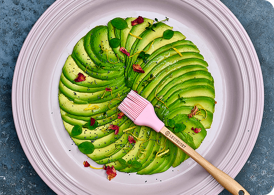 Frisse avocado carpaccio met gemarineerde kruiden & citroen geitenkaas