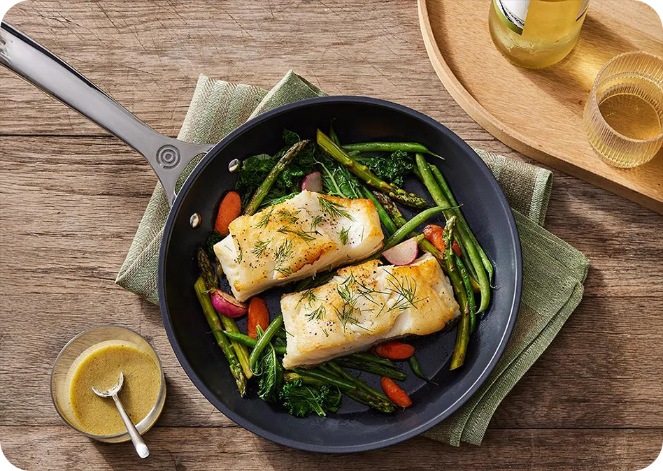 Dit recept voor gebakken visfilet met een citroenmosterdsaus is perfect voor een snelle maaltijd. De vis wordt op een unieke manier gegaard in een koude pan, waardoor je een heerlijk knapperige huid krijgt zonder te veel olie te gebruiken. Geserveerd met gegrilde seizoensgroenten en een frisse saus is dit gerecht ideaal voor een doordeweekse avond of een speciale gelegenheid.