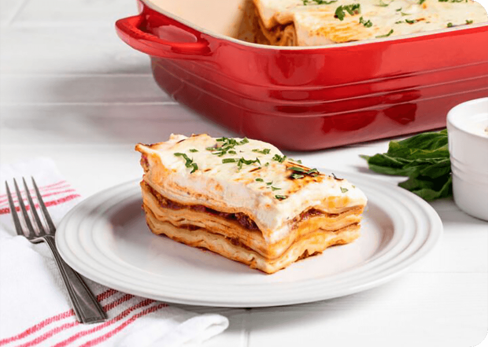Romige italiaanse lasagne met rijk gehakt en bechamelsaus