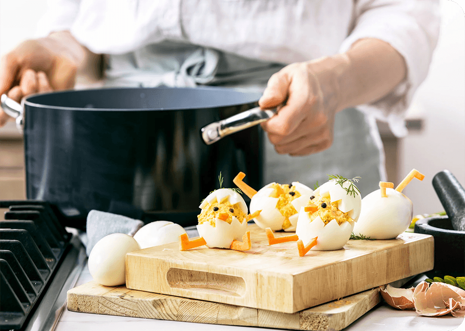 Ja, je kunt gehakte kruiden zoals bieslook, peterselie of dille toevoegen aan de vulling voor extra smaak en een kleurrijke presentatie.
