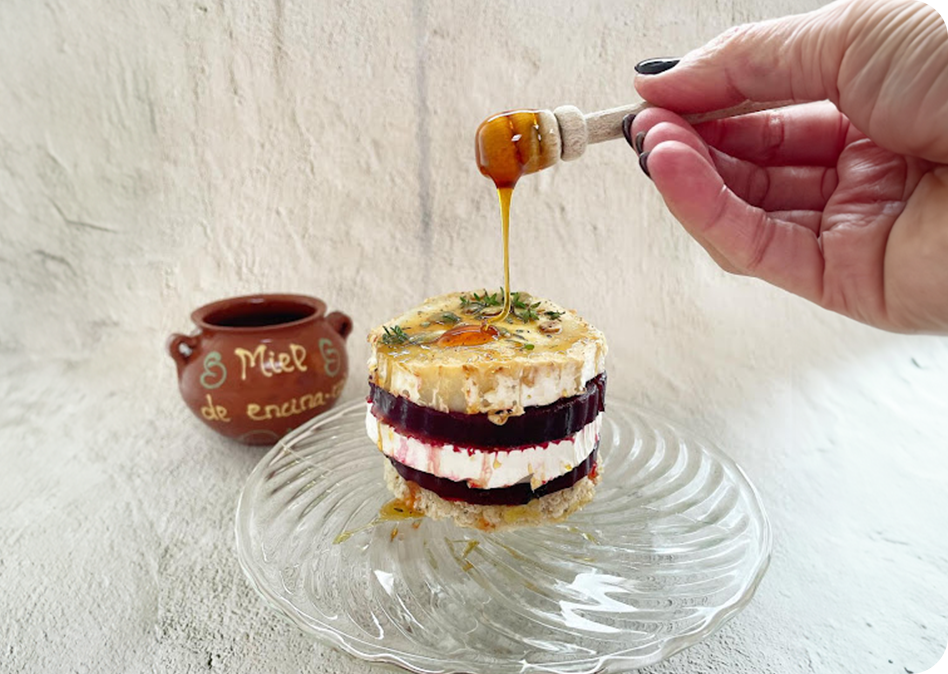 - Herhaal met een tweede laag rode biet en geitenkaas.