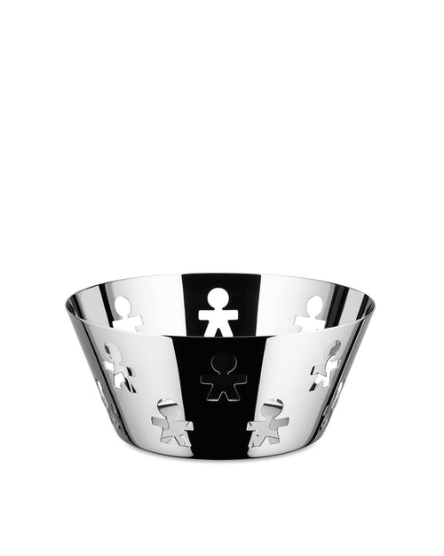 Het motief van de uitgesneden papieren poppen van het ontwerpduo Stefano Giovannoni en Guido Venturini, die de naam King-Kong dragen, siert een reeks alledaagse voorwerpen zoals de Girotondo-mand van roestvrij staal.SpecificatiesDiameter: 20,50 cmHoogte: 8,80 cmStalen RVS mand