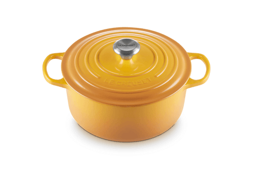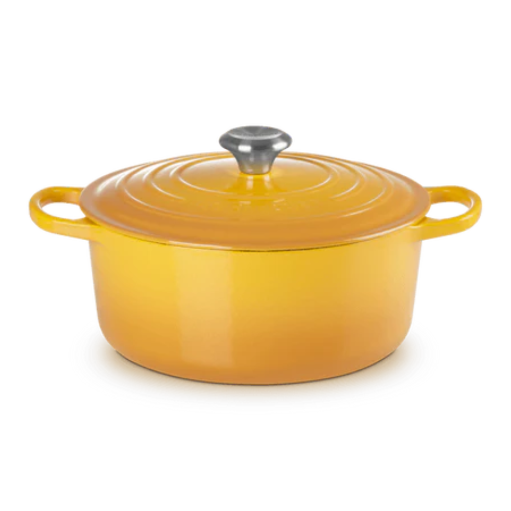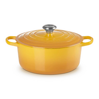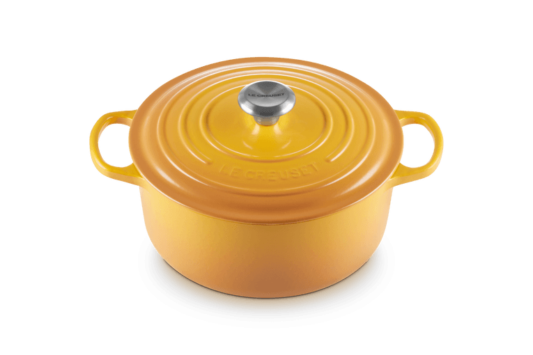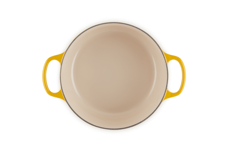 De Le Creuset braad- / stoofpan in Nectar, rond van 28 cm en met een capaciteit van 6,7 liter, is ideaal voor het bereiden van grote stoofschotels en gebraad. Deze pan combineert functionaliteit met een warme gele kleur en is een prachtige aanvulling op je keuken.