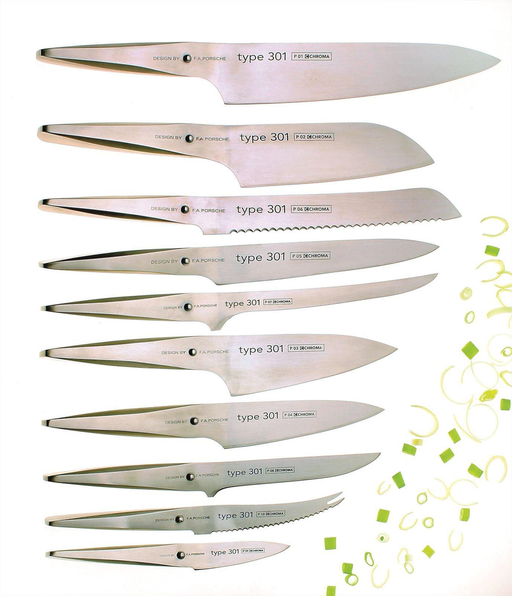 Het Chroma Type 301 universeel mes van 15,2 cm is een veelzijdig keukenmes dat perfect is voor verschillende snijtaken. Dit mes, ontworpen door F.A. Porsche, combineert stijl met functionaliteit, waardoor het een onmisbare tool is voor zowel professionele chefs als thuiskoks.