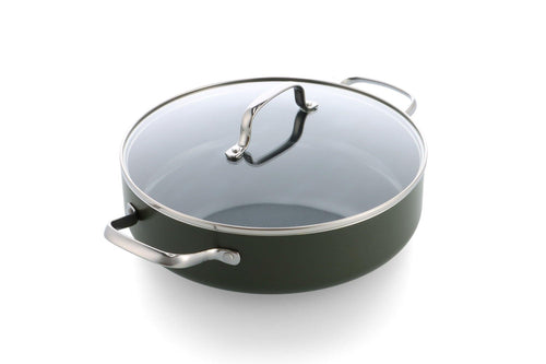 Dankzij de geschiktheid voor alle warmtebronnen, inclusief inductie, kun je deze stoofpan op elk fornuis gebruiken. Of je nu gas, elektrisch, keramisch of inductie kookt, deze pan is altijd een goede keuze. Hierdoor is het een veelzijdige toevoeging aan je keuken, waarmee je verschillende gerechten kunt bereiden.