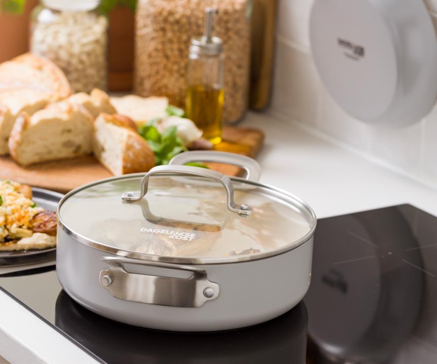 De Dagelijkse Kost Stoofpan Proline is gemaakt van 100% gerecycleerd aluminium, waardoor je kiest voor een milieuvriendelijke kookoptie. Het lichte maar sterke materiaal zorgt voor een snelle en gelijkmatige warmteverdeling, waardoor je energie bespaart en gerechten perfect garen.