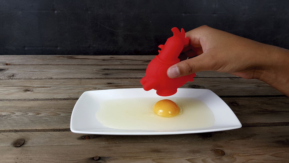 Zonder problemen je eieren scheiden met deze eischeider van Cookut. Breek je ei in een schaaltje en plaats de eischeider over de eidooier. Door op de silicone kip te duwen zuig je de eidooier naar binnen.