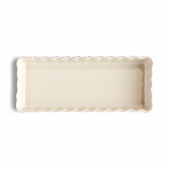 De Emile Henry Taartvorm rechthoek gekarteld Argile 36x15cm is een praktische en elegante taartvorm waarvan de hoge randen je succes garanderen bij al je zoete en hartige taarten, quiches, clafoutis, royale taarten met veel garnituur of groente- en pastagegratin. Het vuurvaste keramiek van hoge kwaliteit zal de temperatuur van uw bereidingen tijdens de maaltijd behouden, en het sobere en originele ontwerp dankzij de rechthoekige vorm stelt u in staat om uw gerechten direct aan tafel te presenteren en te snijden.