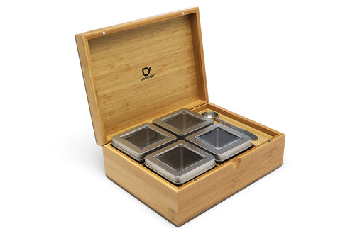 Bewaar je thee met zorg en stijl in de Bredemeijer Theedoos Bamboe met 4 blikjes en theemaatlepel!