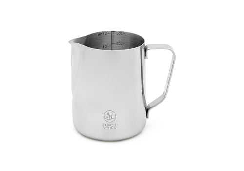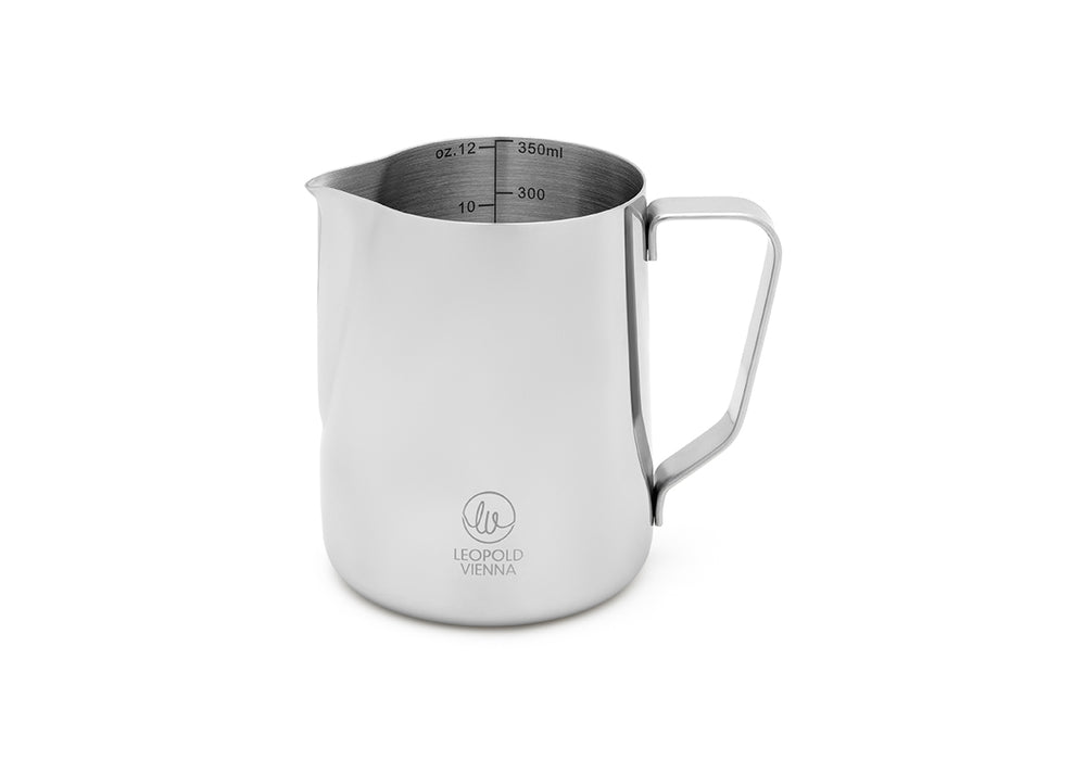 De Leopold Vienna Salento Melk Opschuimkan met een capaciteit van 0,35 liter is perfect voor het opschuimen van melk voor koffiecreaties zoals cappuccino's en lattes. Gemaakt van hoogwaardig zilverkleurig glanzend roestvrij staal 304, biedt deze kan duurzaamheid en een strak ontwerp, ideaal voor zowel thuisbarista's als professionals.