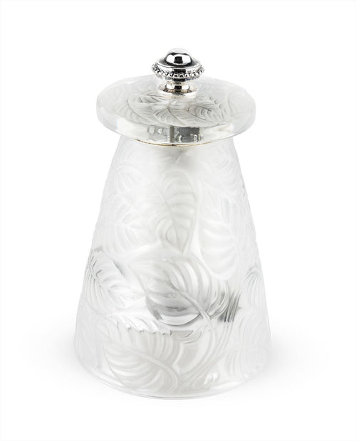 De Lalique kristalfabriek en Peugeot brengen de zoutmolen “feuilles” uit 1924, opnieuw uit. Deze uitzonderlijke zoutmolen, volledig uit kristal, is een eerbetoon aan de Franse uitmuntendheid en de art-decostijl.