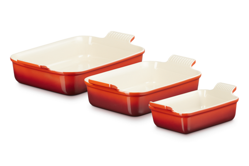 Le Creuset Set van 3 Heritage rechthoekige ovenschalen - Kersenrood - Keramiek