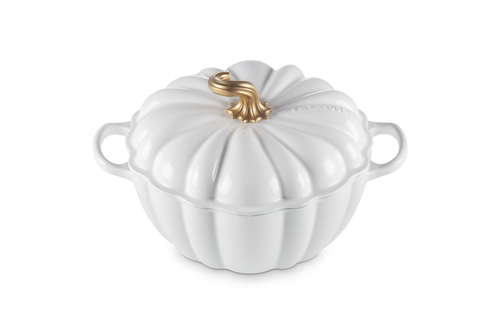 Le Creuset Braad- / Stoofpan 'Pompoen' Signature Met Gouden Knop 24cm 3,7l Wit Gietijzer