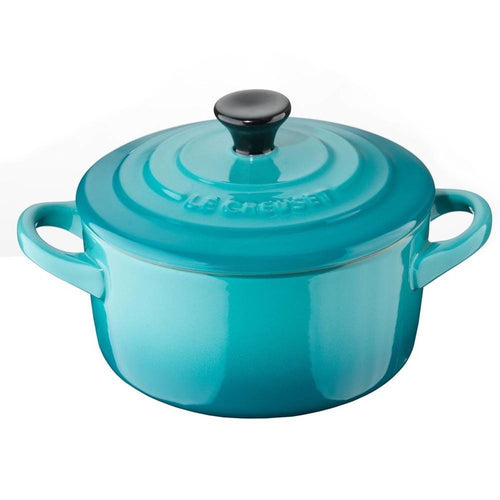 De Le Creuset aardewerken mini braadpan in Caribbean Blue, met een diameter van 10 cm en een capaciteit van 0,25 liter, is ideaal voor het bereiden en serveren van kleine gerechten. Deze kleurrijke mini braadpan brengt een tropische flair naar je keuken.