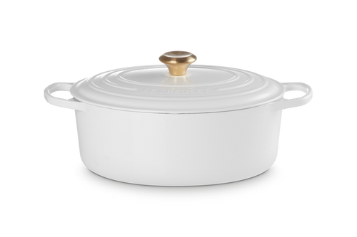 Le Creuset Braad- / Stoofpan Signature Ovaal met Goudkleurige Knop 31cm 4,1l Wit Gietijzer