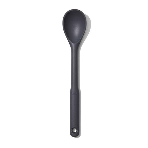 Deze grijze siliconen OXO Lepel is handig voor het scheppen en roeren van groenten, pasta en meer. Het siliconen is hittebestendig, voedselveilig en bestaat uit één stuk. Hierdoor is deze soeplepel duurzaam en gemakkelijk te reinigen.