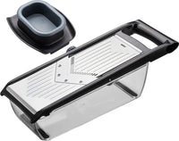 Met deze mandoline kun je snel groenten en fruit in mooie, gelijkmatige julienne reepjes snijden. De opvangbak zorgt ervoor dat alles netjes blijft en voorkomt rommel op je aanrecht. Ideaal voor het maken van salades, groentesnacks of het garneren van gerechten.