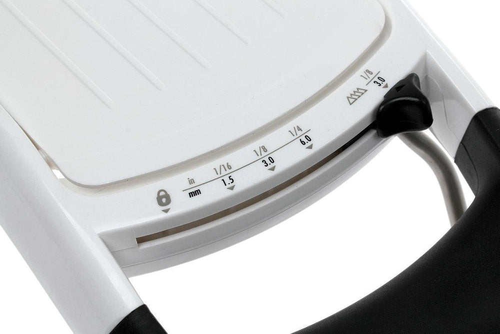 De OXO Mandoline 4 is een veelzijdige keukenhulp. Het is uitgerust met een gekromd RVS blad dat zelfs probleemloos zachte vruchten zoals tomaten snijdt. De mandoline heeft 3 diktestanden en een stand voor juliënnereepjes, waardoor je een verscheidenheid aan snijopties hebt.