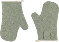 De ovenwanten hebben een stijlvolle pistache kleur die een frisse en moderne uitstraling aan je keuken toevoegt. Het elegante ontwerp maakt ze niet alleen functioneel maar ook een aantrekkelijke aanvulling op je keukeninrichting.