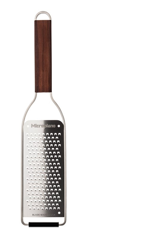 De Microplane Master Rasp grof is een uniek stuk keukengerei. De raspen van Microplane zijn de enige raspen welke lasergesneden zijn. Dit onderscheid de raspen van vele andere merken en heeft dan ook een positief effect op de levensduur van de raspen. Het blad is gemaakt van 18/10 RVS en is met een extra verstevigde RVS behuizing bevestigd aan het handvat. Het handvat is gemaakt van Amerikaans notenhout.