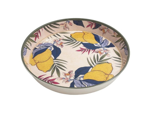 De Rose & Tulipani Limù ronde schotel (35 cm) is een kleurrijk en stevig dienblad met frisse citrusdecoratie. Deze melamine schotel is ideaal voor buitengebruik en voegt een zomers accent toe aan elke tafel. Gebruik hem om drankjes, hapjes of desserts te serveren tijdens een tuinfeest, picknick of zomerse lunch. Het lichte, duurzame materiaal is bestand tegen vlekken, geurtjes en temperatuurschommelingen.