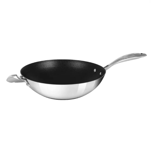 De Scanpan HaptIQ wokpan is opgebouwd uit 5 lagen, waaronder aluminium (voor een uitstekende warmtegeleiding) en RVS. De RVS buitenkant verhoogt de duurzaamheid en maakt de pan geschikt voor inductie.