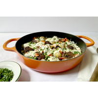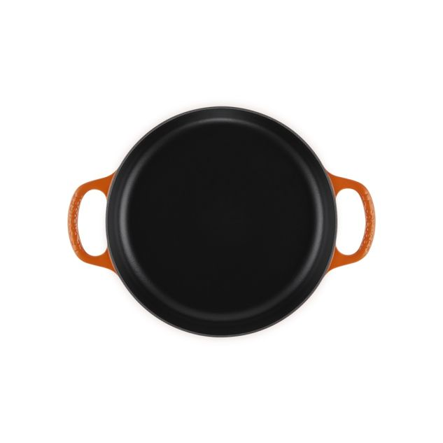 De Le Creuset Hapjespan in oranjerood is een combinatie van functionaliteit en stijl. Het geëmailleerde gietijzer biedt ongeëvenaarde warmteverdeling en duurzaamheid, waardoor de pan ideaal is voor zowel langzaam koken als snel bakken. De stevige dubbele handvaten zorgen voor een veilige grip, zelfs wanneer de pan vol is. Met een inhoud van 3,2 liter is deze pan geschikt voor het bereiden van heerlijke stoofpotten, gebakken gerechten en ovenschotels.