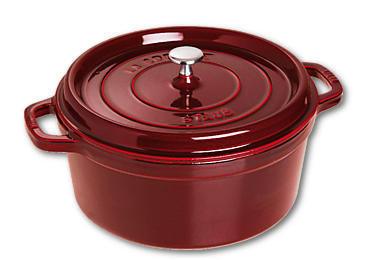 De Staub Cocotte is ontworpen met een geëmailleerd gietijzeren kern voor optimale warmtebehoud. Het heeft een zwaar, vlak deksel voor optimaal behoud van stoom. De vernikkelde knop is hittebestendig voor gebruik in de oven (tot 250°C).
