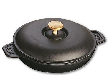 De gietijzeren warme borden met deksel zijn zeer sterk en houden uitstekend warmte vast; laat uw gerecht gelijkmatig garen in de oven en dien meteen in stijl op aan tafel. Dankzij deze borden zal de bereiding aangenaam warm blijven. De speciale mat zwarte afwerking aan de binnenkant is duurzaam en makkelijk in onderhoud.<.>