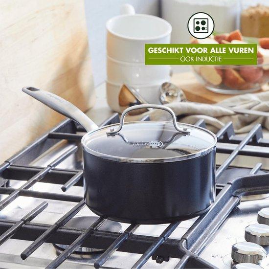De GreenPan Copenhagen steelpan met twee tuiten maakt schenken gemakkelijker dan ooit. Of je nu linkshandig of rechtshandig bent, het schenken van sauzen en vloeistoffen is kinderspel dankzij dit doordachte ontwerp.