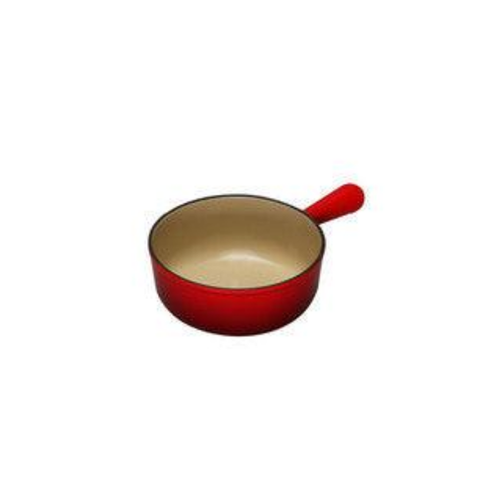 De Le Creuset gietijzeren ronde steelpan zonder deksel in Kersenrood, met een diameter van 22 cm en een capaciteit van 2,6 liter, is perfect voor het bereiden van sauzen, soepen en kleine eenpansgerechten. Deze steelpan combineert de functionaliteit van gietijzer met de iconische kersenrode kleur van Le Creuset, wat zorgt voor een stijlvol en praktisch keukengerei.