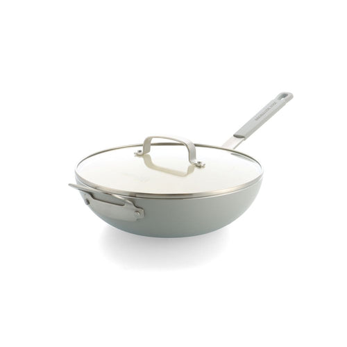 De Dagelijkse Kost Wok Proline combineert een modern truffelgrijs design met een hoogwaardige crèmekleurige binnenkant. Gemaakt van 100% gerecycleerd aluminium, biedt deze wok een optimale warmteverdeling en een duurzame, milieuvriendelijke kookervaring. Dankzij de PFAS-vrije keramische antikleeflaag kook je met minder vet en geniet je van moeiteloos schoonmaken.