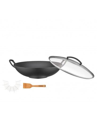 Spring Wok gietijzer met glazen deksel en accessoires - Ø350mm