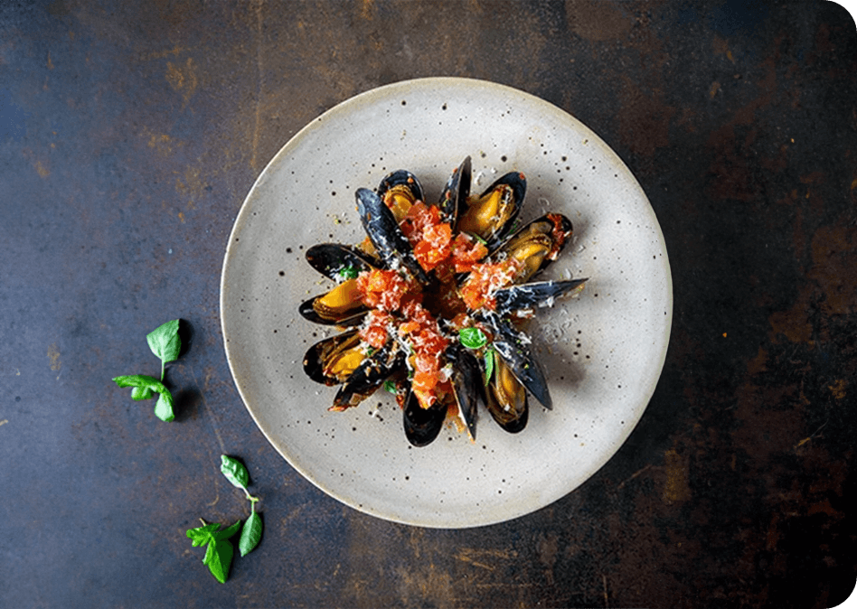 Pittige mosselen met 'Nduja, vierge tomaat en parmezaan