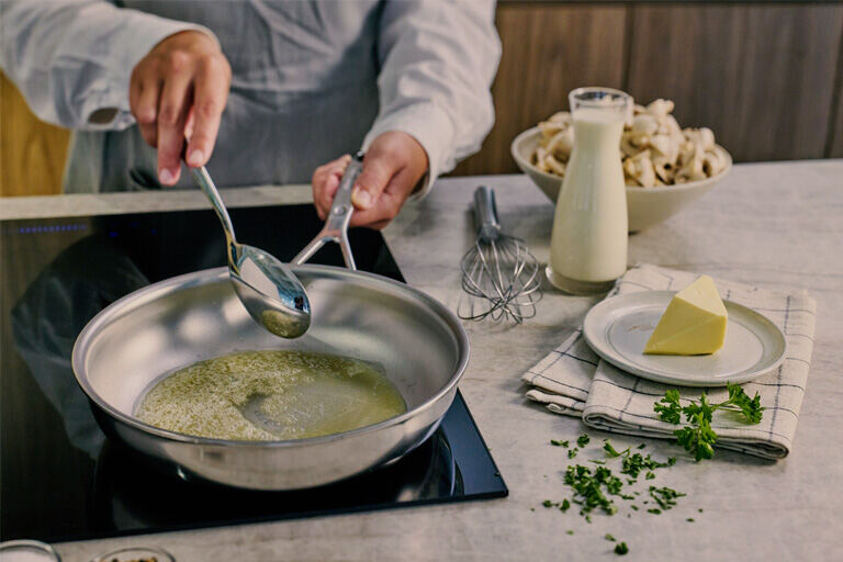 👉 Roestvrijstalen Demeyere pannen hoef je niet in te branden. Ze zijn meteen klaar voor gebruik.