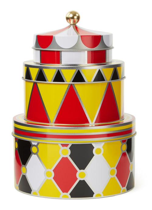 De Alessi Circus-set van 3 voorraaddozen is ontworpen door Marcel Wanders. Deze set bestaat uit drie opbergblikken, elk met een uniek en kleurrijk design geïnspireerd op de outfits van circuskarakters.