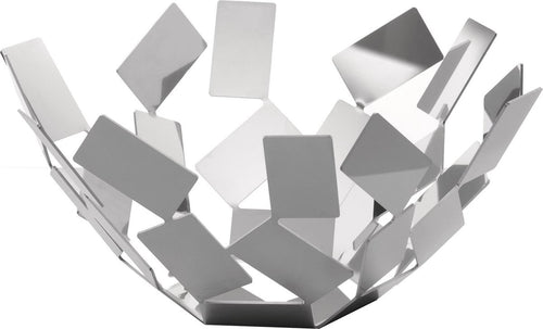De Alessi fruitmand “La Stanza dello Scirocco” is niet zomaar een schaal. Deze opvallende mand is ontworpen door Mario Trimarchi en draagt een verhaal met zich mee. Geïnspireerd op een stille kamer in een Siciliaanse woning tijdens de warme Sirocco-wind, vangt deze mand de essentie van beweging, stilte en reflectie. De geometrische vormen lijken te dansen zoals stukjes papier in de wind. Een kunstobject dat tegelijk functioneel is. Perfect als centerpiece op tafel of als stijlvolle opberger voor fruit.