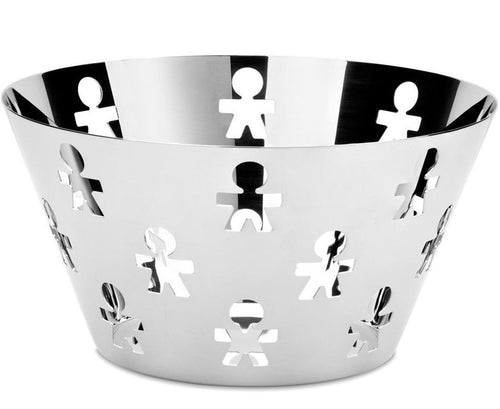 De Alessi Girotondo fruitschaal is een prachtig voorbeeld van iconisch design. Het speelse, opengewerkte patroon van figuurtjes rondom de rand geeft deze schaal een unieke en vrolijke uitstraling die perfect past in elke keuken of eetkamer.