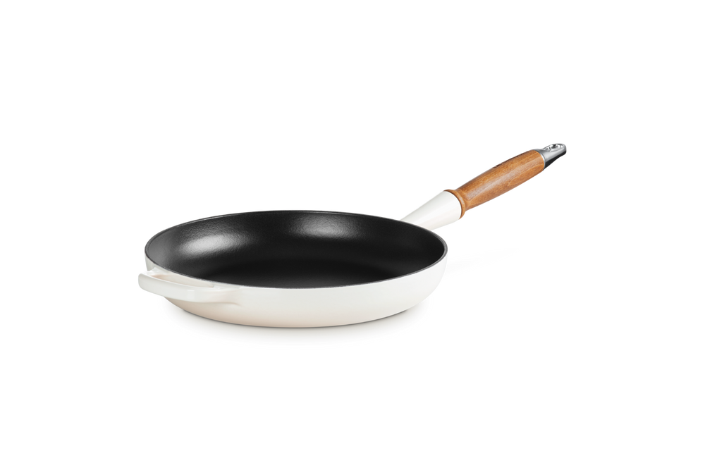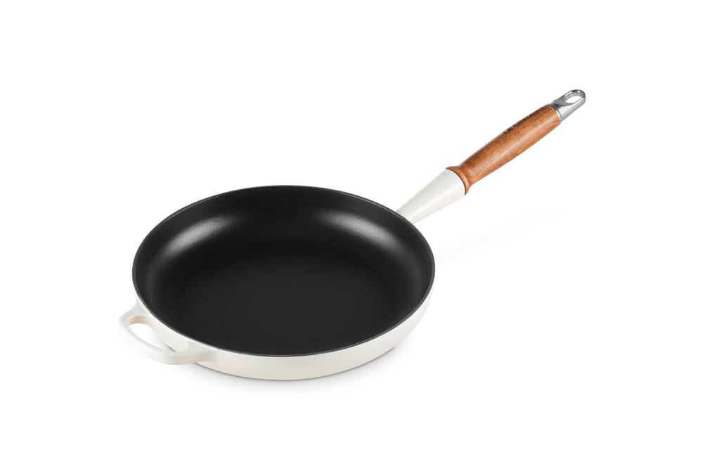 Le Creuset Koekenpan Signature met Houten Handvat Rond 26cm 2,0l Meringue Gietijzer