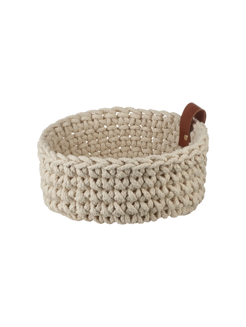 Het gehaakte ontwerp geeft de mand een unieke uitstraling en past perfect bij een eigentijdse inrichting. De nude kleur en matte afwerking zorgen voor een subtiele en moderne look.