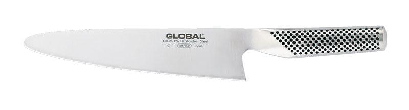 Het Global G1 Koks/groentemes 21cm is een essentieel mes voor elke keuken. Het lange lemmet maakt het ideaal voor een breed scala aan snijtaken, van het hakken van groenten tot het snijden van vlees.
