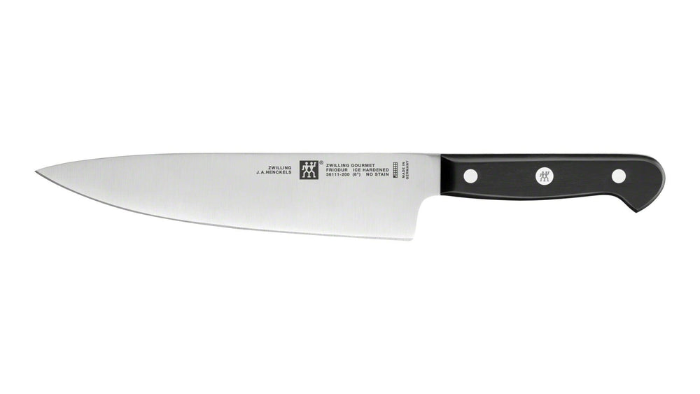 Mes met breed, stevig lemmet. De ‘allrounder’ voor zowel de professional als de hobbykok. Voor het snijden van groenten en het fijnhakken van kruiden. De robuuste greep van de traditionele messenserie ZWILLING Gourmet past perfect in de hand en harmonieert perfect met het scherpe mes.