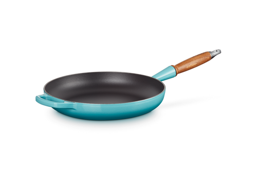 Bereid heerlijke gerechten met gemak met de Le Creuset gietijzeren koekenpan van 28 cm en 2,6 liter in Caribbean Blue.