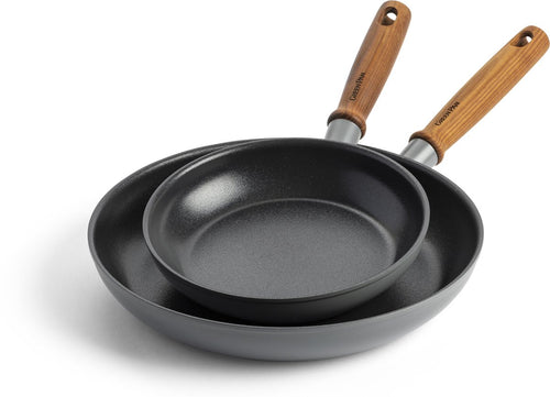 Ervaar culinaire hoogstandjes met de 2-delige pannenset van de opwindende Mayflower Pro collectie van Greenpan. Deze collectie, geïnspireerd door Scandinavisch design, brengt niet alleen kleur in je keuken maar ook een gezellige sfeer. Of je nu geniet van dagelijkse keukenmomenten of indruk wilt maken met uitzonderlijke gerechten, de Mayflower Pro set is je ideale partner. Het robuuste aluminium design garandeert snelle en gelijkmatige kookresultaten. De geavanceerde Thermolon anti-aanbaklaag met ScratchGuard technologie zorgt voor langdurige anti-aanbakprestaties. De elegant antracietgrijze kleur en de koelblijvende essenhouten handgrepen voegen een vleugje klasse toe aan je keuken.