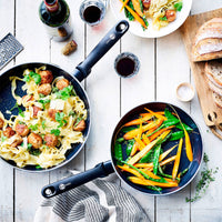 De keramische antikleeflaag van de Torino koekenpan staat garant voor gezondere maaltijden. Je hebt minder olie en vet nodig voor het koken, wat resulteert in lichtere en gezondere gerechten zonder in te boeten aan smaak. Bovendien bevat deze innovatieve laag geen schadelijke chemicaliën.