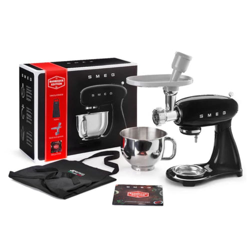 Smeg SMF23BLEU Special Edition pack BBQ edition - Keukenmachine - Multi vleesmaler SMMG01 - Smeg keukenschort - receptenboekje - zwart